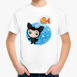 Детская футболка с принтом Котенок мечтающий о рыбке