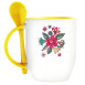 Кружка с ложкой с принтом Цветы