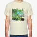 Футболка с принтом Ежик. Мимими. Дорога. Деревья. Роща. Небо.