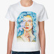 Классическая футболка девушка с бирюзовыми волосами и лилией