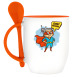 Кружка с ложкой, оранжевая